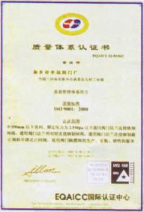 • 質(zhì)量體系認(rèn)證證書(shū)